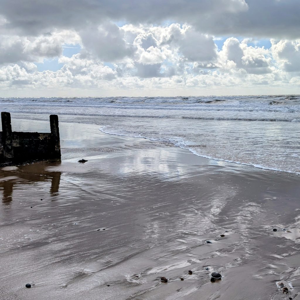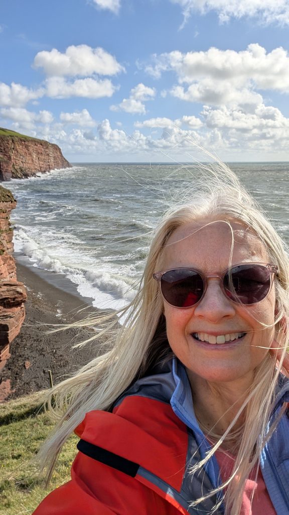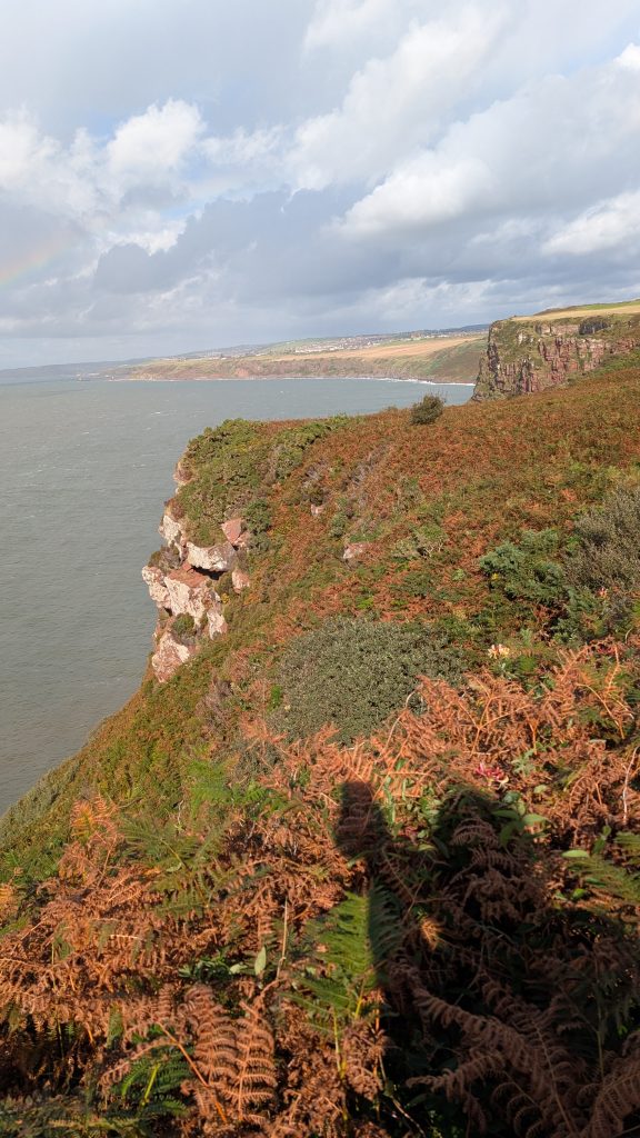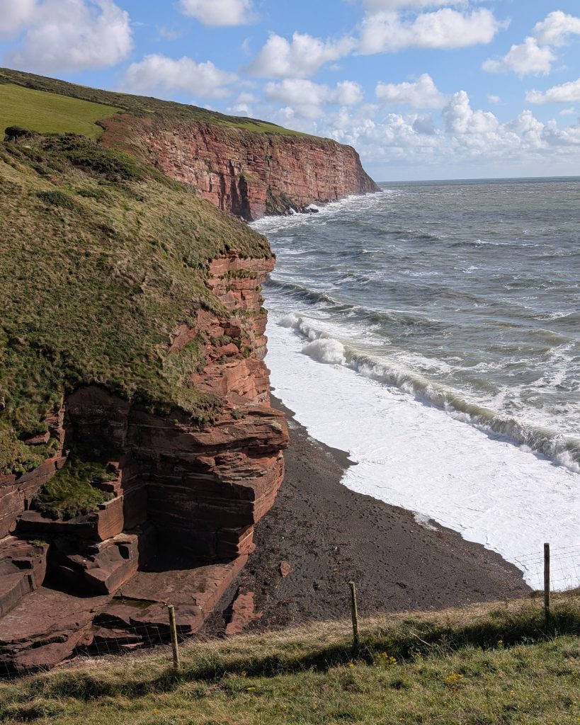 I lucked out and got a ride from South Wales where I was visiting family to St Bees with my niece and family who were travelling up to the lake District that weekend. We arrived early afternoon and their dog and my great-niece had fun playing on the stones and beach. It was a little chilly in the wind, but the sun had come out and the rain had stopped (pic1).