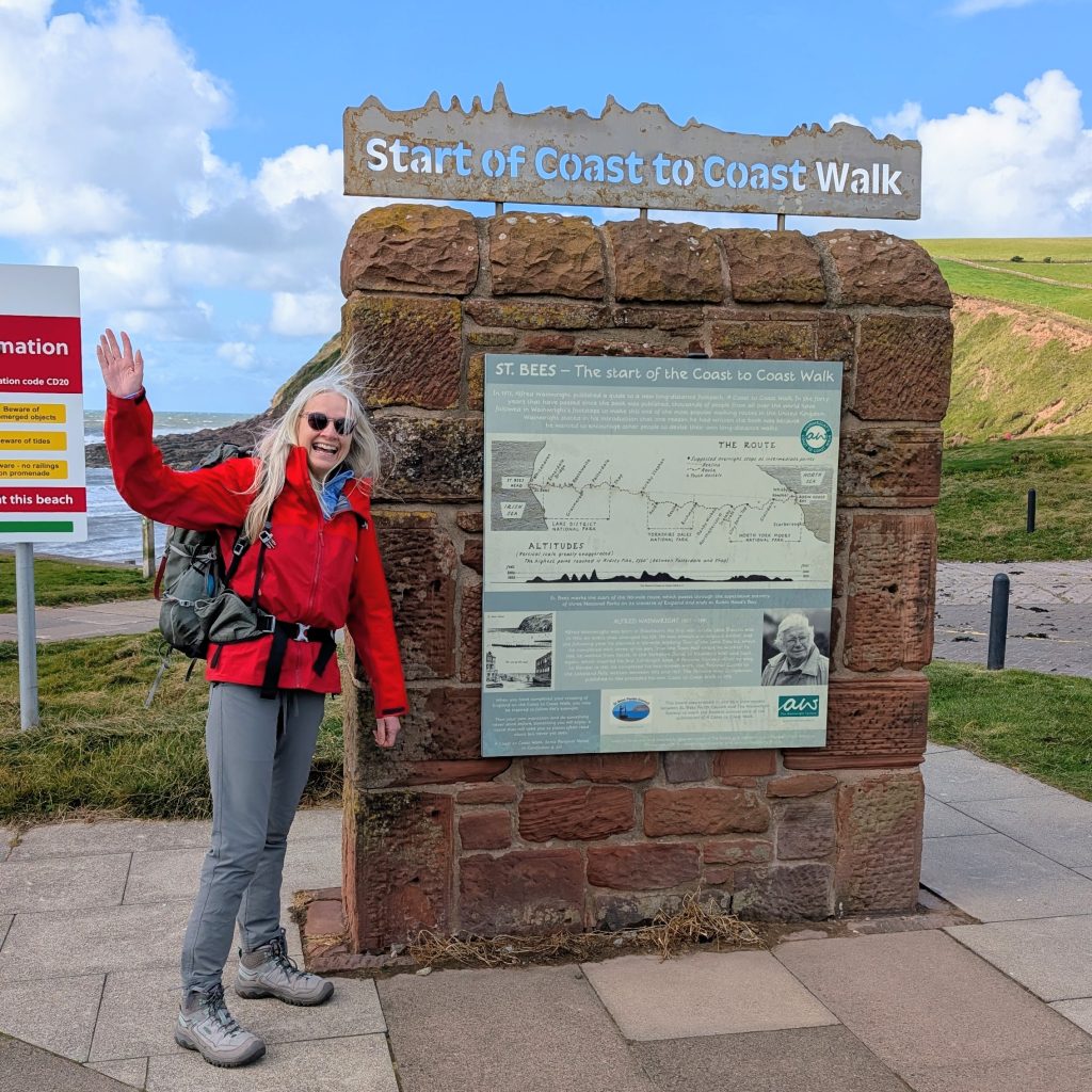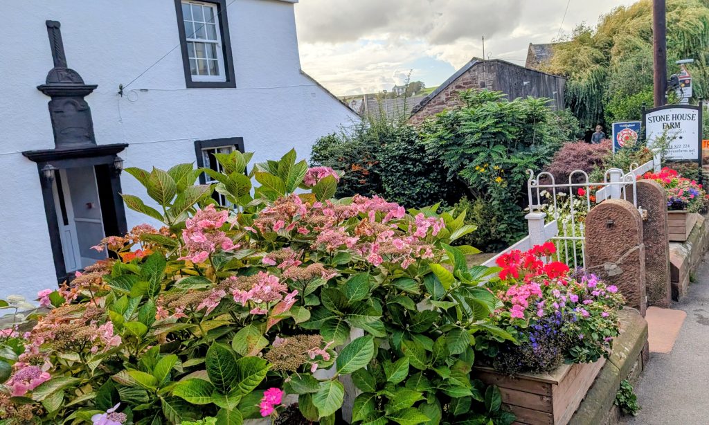 Several things to look at in St Bees – St Bees priory dates from 1130 (pic 2), and the St Bees man, a knight who died in 1368 was discovered there, St Bees school (pic 3) founded as a free grammar school in 1583 (now an independent boarding school with many overseas students) and the life boat station (pic 4). Also I found one post office/ convenience store, a cafe on the front, two pub/hotels (pic 4) and a wild sauna (pic 5) that you can book! So we had a good wander, and then I said goodbye to my family and headed up to my diggs for the night at Stone House farm, a very pretty stone house with lots of flowers out front (pic 6). I had a warm welcome from the lady there and ordered my packed lunch for the next day (£8 for 2 sandwiches, apple, crisps, flap jack and a drink), and set my breakfast time for 7am to get and early start.